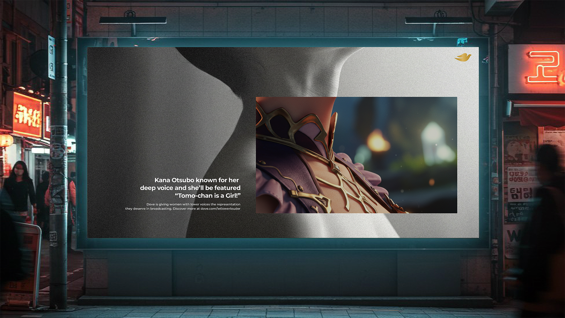 To challenge this bias, Dove partnered with TV Asahi to have sponsors introduced not by high voices, but by women with lower voices—showing the beauty and value of low female voices across various fields. “Let Lower Louder” — so their voices can be heard, and truly resonate.
