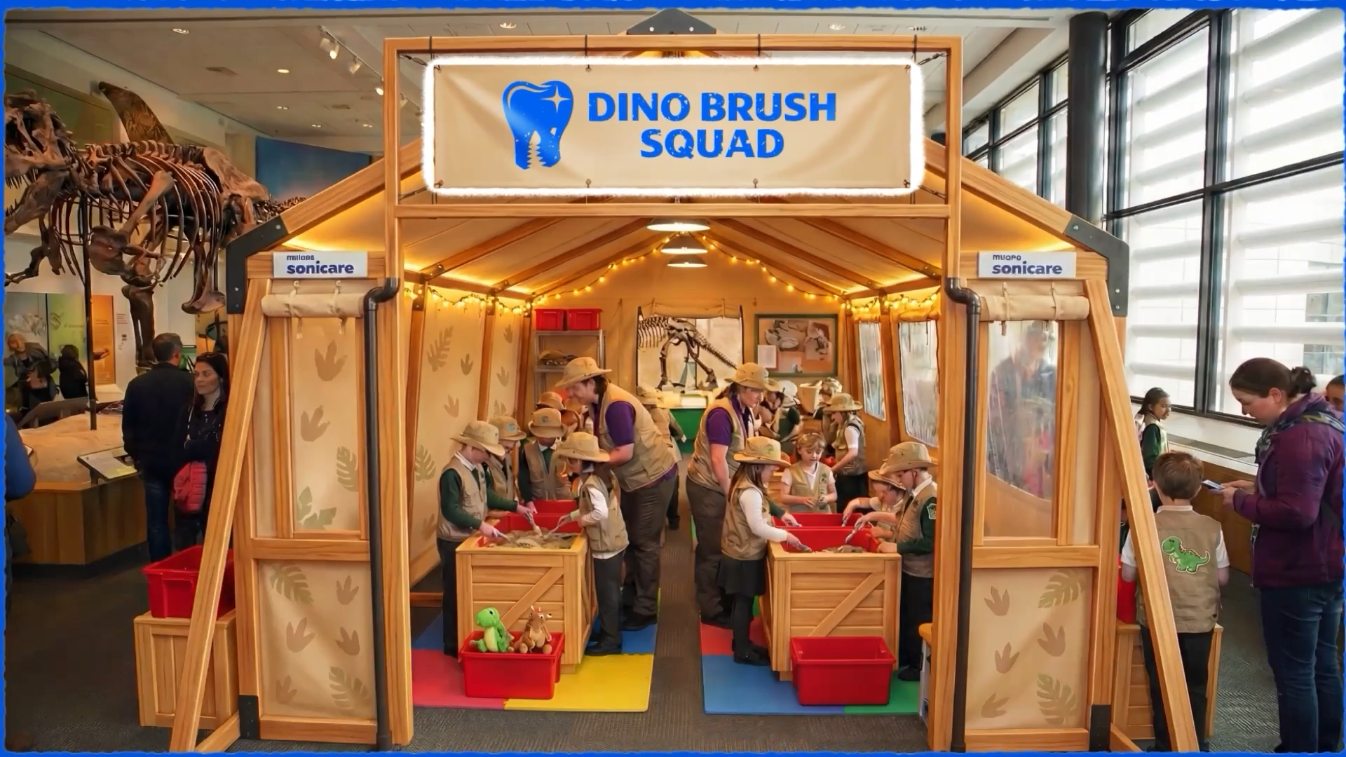 So we asked a different question: How can we make kids actually want to brush their teeth on their own? The answer wasn’t in the bathroom. It was at the natural history museum. Kids are far more fascinated by dinosaur teeth and bones than their own. So we partnered with science museums to turn brushing into an adventure.